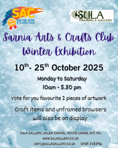In association with Sarnia Arts and Crafts Club we will be showing some of the island's best ammateur artists, which we have done annually here at Sula for a few years now.